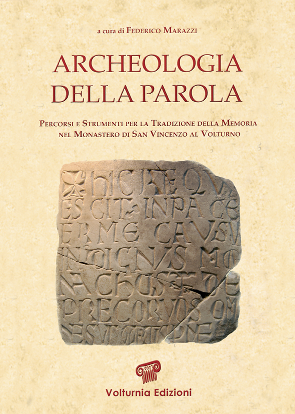 Se però si vuole analizzare e descrivere compiutamente il fenomeno della produzione scrittoria all'interno di un monastero di quell'epoca, il primo aspetto da tener presente è quello della sua natura multimediale. Il termine, tipico del linguaggio proprio della più incombente contemporaneità, potrebbe apparire poco opportuno in riferimento ad una realtà così lontana nel tempo: invece, se guardiamo a tutte le circostanze in cui la scrittura compare in un luogo come San Vincenzo al Volturno, ci accorgeremo che esso è proprio il più giusto. Sbaglieremmo, infatti, se pensassimo che solo sulle pagine di pergamena dei libri si depositassero i frutti del sapere scrittorio dei monaci, e sbaglieremmo ancor più se considerassimo quella del "libro" come una categoria costituita da oggetti identici fra loro. [ ... ]