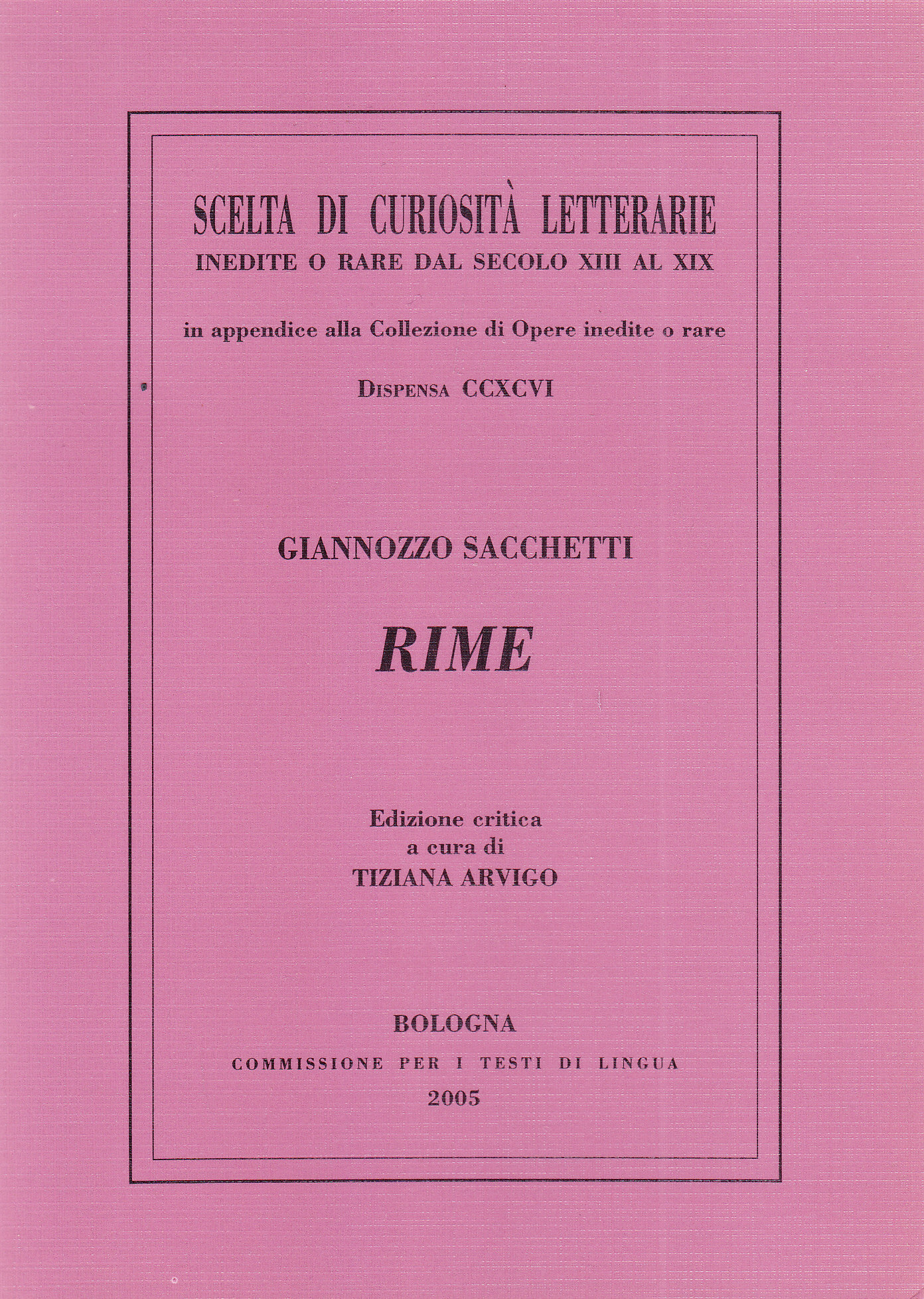 Il volume presenta, per la prima volta in edizione critica, tutti i testi dell'esiguo ma seducente canzoniere di Giannozzo Sacchetti, fratello del più celebre Franco, poeta dalla vena episodica e tuttavia felice, alle cui liriche di lavoro di collazione e di restauro fornisce una veste parzialmente nuova, e una nuova opportunità per entrare nelle letture degli amanti di un Trecento fine ed estroso.