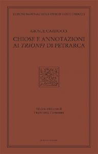 Nella lunga fedeltà di Carducci nei confronti di Petrarca c'è una zona d'ombra che riguarda i Trionfi. In un arco cronologico di quasi cinquant'anni, sono infatti rari gli affondi di Carducci sul poema italiano di Petrarca: non a caso, mentre nel 1896 usciva a Firenze l'edizione di Canzoniere e Trionfi dovuta a Giovanni Mestica, nel 1899 Carducci e Severino Ferrari pubblicavano le sole rime del Canzoniere. Eppure, nella Casa-Museo di Bologna si conservano due fascicoli di carte che trasmettono il suo commento, sino ad ora rimasto inedito, a cinque capitoli trionfali: un commento avviato nei primi anni Sessanta dell'Ottocento e abbandonato da Carducci in uno stato ancora provvisorio dopo il 1893, ma già fornito di un impianto storico ed erudito, fondato sulla tradizione esegetica precedente, volto all'esatta comprensione della lettera e integrato da annotazioni filologiche, linguistiche e stilistiche proprie del Carducci maturo. Questa edizione critica propone quindi per la prima volta il testo del commento di Carducci ai Trionfi, rispettando il più possibile lo stato degli autografi. Il testo è corredato di un apparato critico che dà conto degli interventi dell'autore sulle carte (emendamenti, aggiunte, cassature) e accompagnato da alcune note orientate a valorizzare la carducciana "arte del commento".