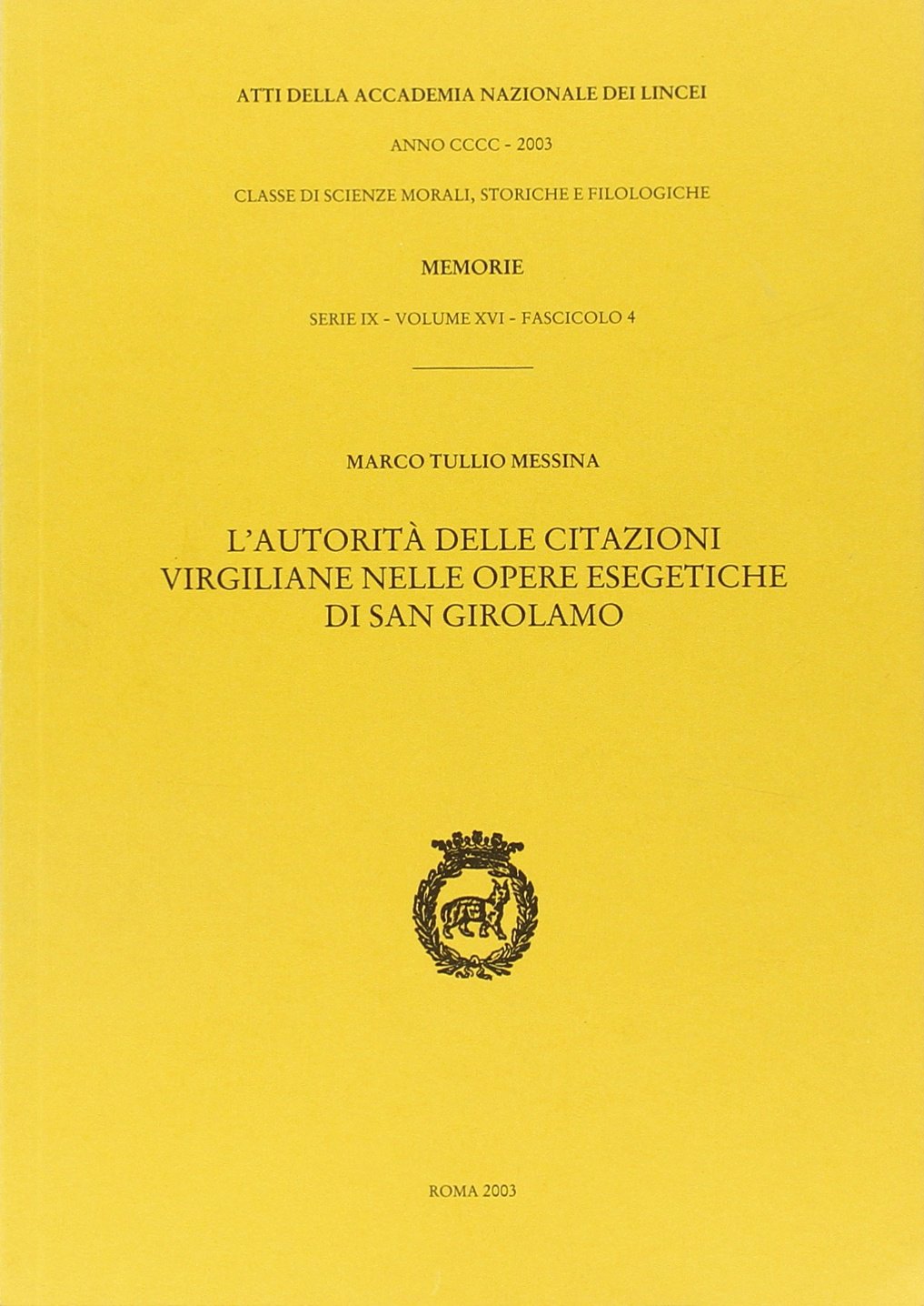 AUTORE/CURATORE/ARTISTA : Autore: Marco Tullio Messina EDITORE/PRODUTTORE : Accademia Nazionale dei Lincei COLLANA/SERIE : Memorie. Classe di Scienze Morali Storiche e Filologiche
