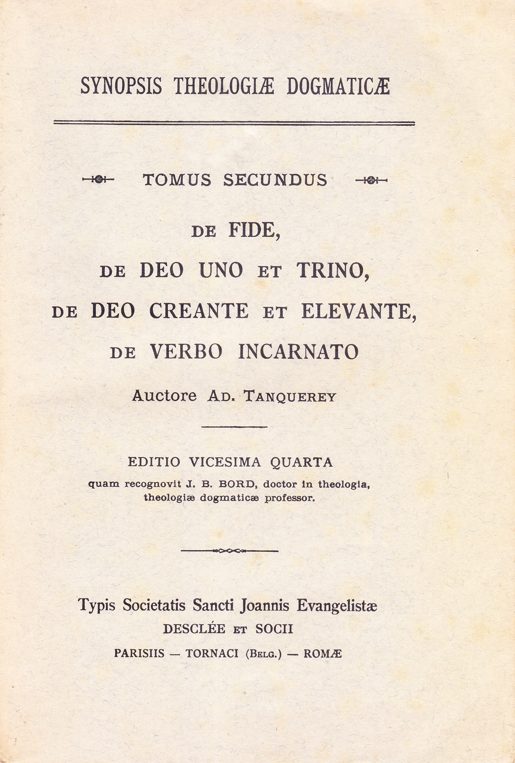 189 Pars altera: de Theologia seu scientia fidei.