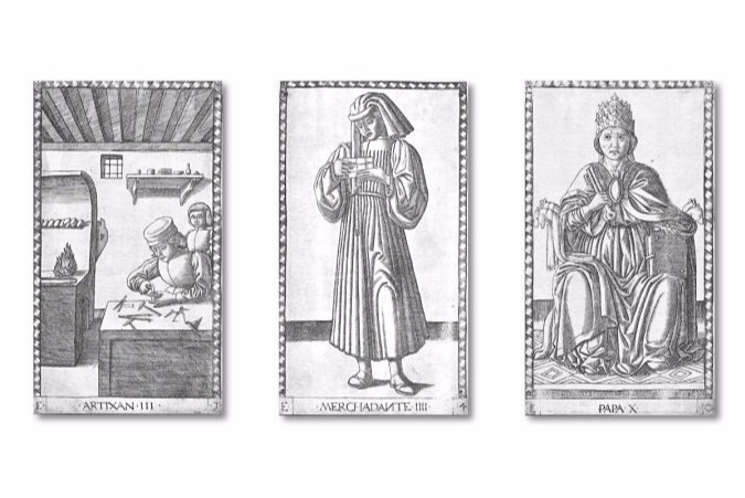 Commento dell'editore: A deck in 50 cards made in Ferrara during 1450 by Andrea Mantegna for the Duke of Ferrara Borso d'Este. 1.000 numbered exemplaries.