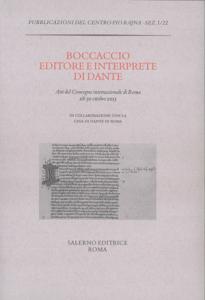Nel settimo centenario della nascita di Boccaccio il volume racchiude gli Atti del convegno svoltosi dal 28 al 30 ottobre 2013 presso il Centro Pio Rajna e la Casa di Dante in Roma, che ha avuto per tema l'attività di copista e editore dell'opera dantesca da parte del grande scrittore e 'discepolo' di Dante. A Boccaccio – figura di massimo spicco nella storia degli studi danteschi, lettore e ammiratore di Dante, primo biografo nel senso più pregnante del termine, editore e interprete della Commedia e non solo di questa – dobbiamo notizie e testimonianze preziose su aspetti fondamentali della biografia e dell'opera di Dante, che senza il suo contributo sarebbero stati irrimediabilmente perduti. A lui si deve anche l'iniziativa che determinò le condizioni per una "riconciliazione" post mortem di Dante con la città che ne aveva decretato il sofferto esilio: Il trattatello in laude di Dante. Un tributo dunque al Certaldese, cui va il merito di aver concorso alla salvaguardia del patrimonio dantesco.