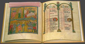 Questo eccezionale codice, miniato nell’età aurea dell’imperatore Federico II Hohenstaufen, è stato realizzato nello scriptorium benedettino dell’Abbazia di San Michele in Hildesheim (Germania, Bassa Sassonia) intorno alla metà del XIII secolo. Lussuosamente decorata in oro e a colori sgargianti, l’opera testimonia l’armonico incontro dell’arte romanica e bizantina con i primi elementi del gotico e costituisce l’esempio autorevole di un’espressione artistica allora innovativa, nota come stile sassone.