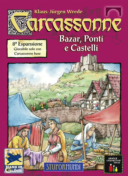 Con questa ottava espansione di Carcassonne – vincitore dello Spiel des Jahres 2001 – i giocatori aprono dei bazar in giro per la regione, dove la contrattazione è vissuta come un'arte antica. Intanto, gli ingegneri si specializzano nella costruzione di ponti per poter superare qualunque ostacolo e innalzano piccoli castelli per vegliare sulle zone limitrofe. Le tessere hanno il simbolo dell'espansione sul fronte per facilitarne il riconoscimento quando devono essere riposte.