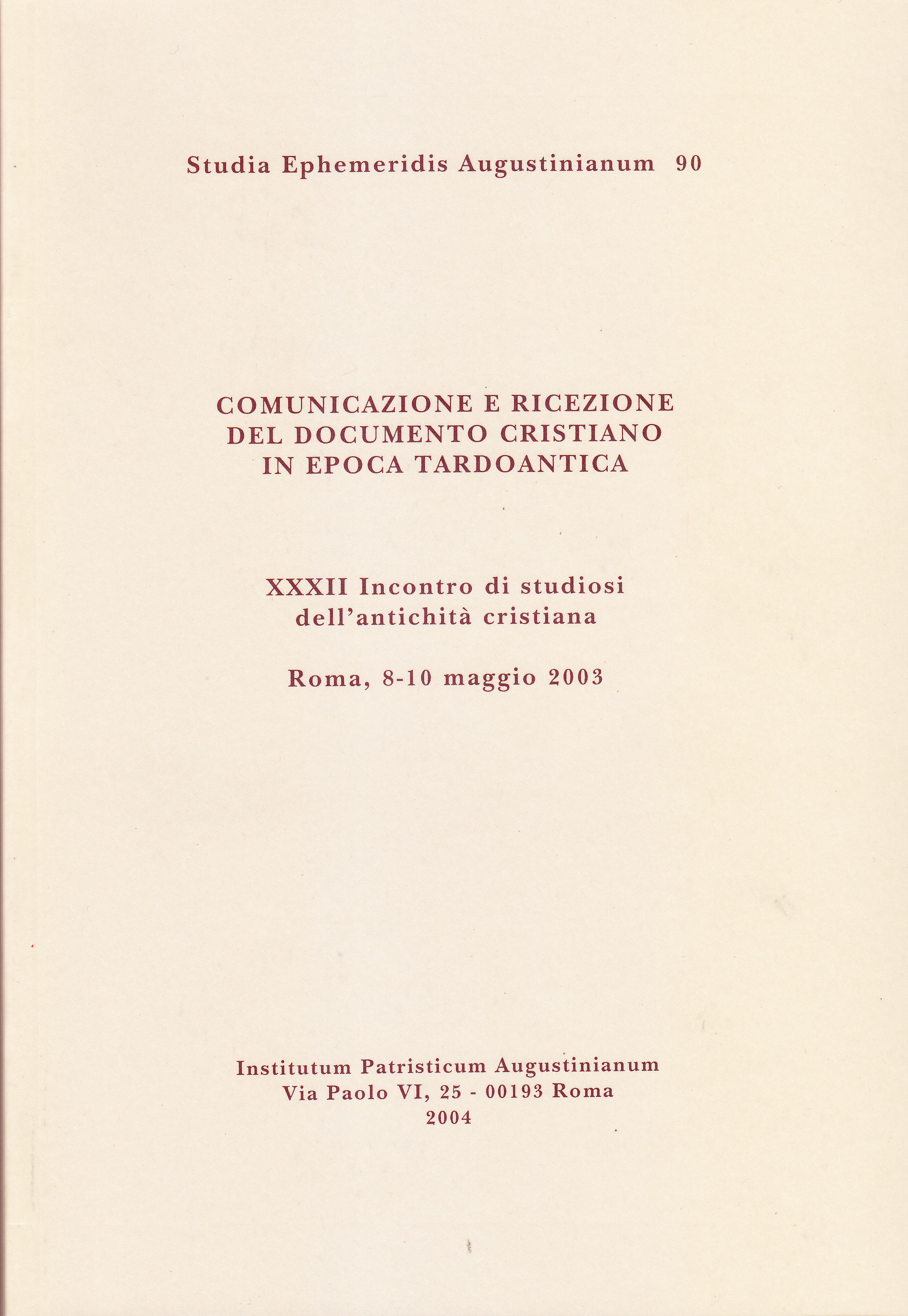 XXXII Incontro di studiosi dell'antichità cristiana (Roma, 8-10 maggio 2003)