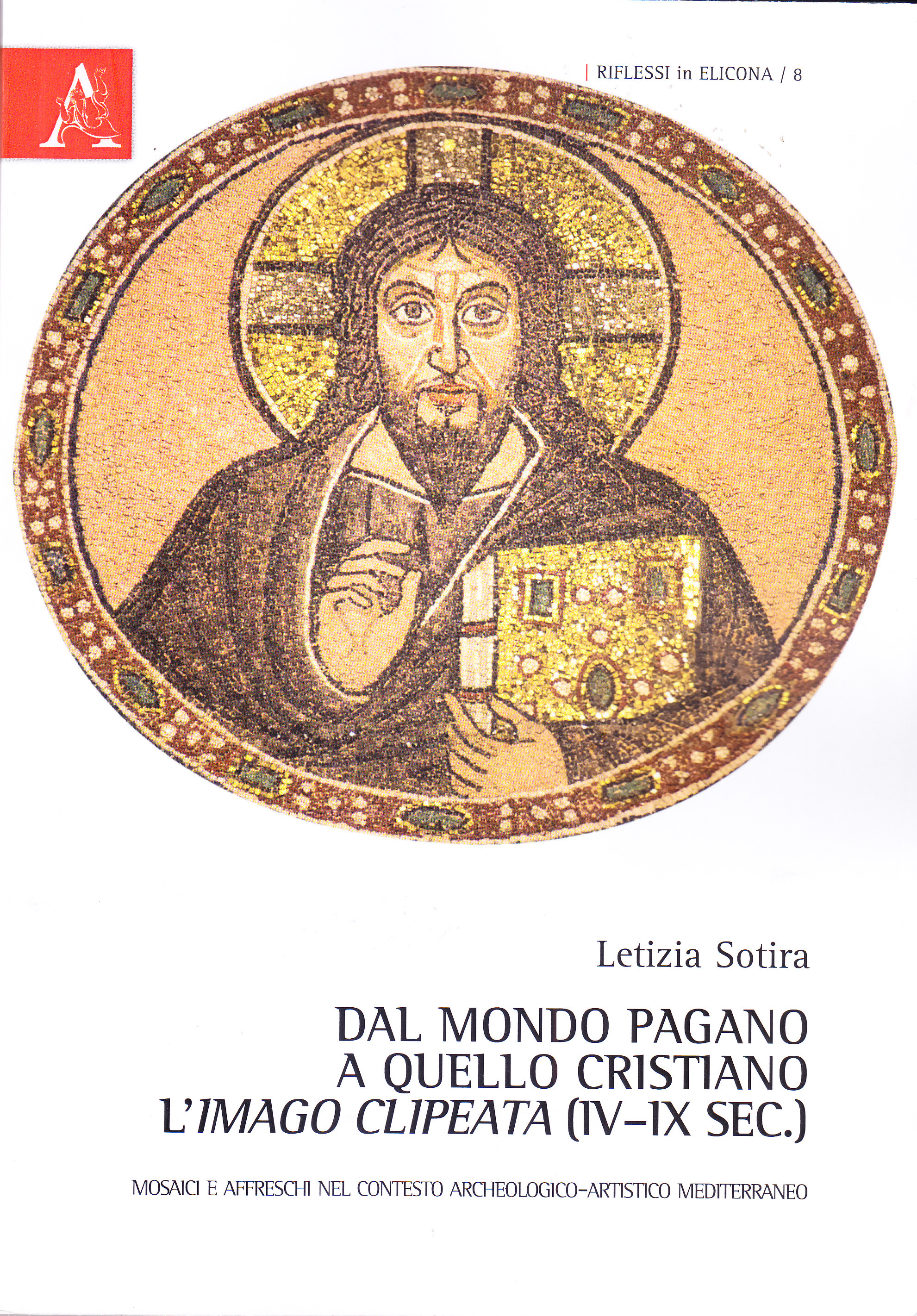 Immagine nell'immagine, l'"imago clipeata" affonda le proprie origini nell'arte greca e romana rivestendo in diversi ambiti (pittorico, scultoreo e architettonico) un ruolo ora commemorativo, ora eroicizzante, divenendo poi gradualmente, a partire dell'età tardoantica, un elemento frequentemente impiegato nell'arte cristiana: esso, pur liberandosi dell'antica ascendenza pagana, conserva tuttavia la propria funzione celebrativa trasferendola sulle effigi di Santi, Sante, croci e monogrammi cristologici. Svolge così una funzione sacralizzante, assumendo posizioni di rilievo, in special modo nei programmi musivi parietali degli edifici di culto. Attraverso l'esame delle "imagines clipeatae" di area occidentale e orientale, attribuibili al periodo compreso tra IV e IX secolo, esistenti e scomparse - ma note attraverso le fonti -, l'opera intende offrire una visione complessiva di questa cifra iconografica che incontrò grande favore e diffusione nell'arte paleocristiana e bizantina, assicurando continuità alla tradizione classica, arricchita però di nuove ideologie e di una nuova spiritualità.