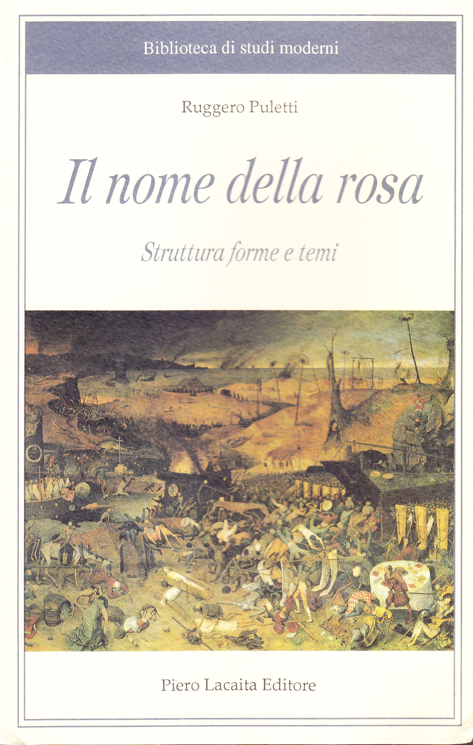 L'impostazione del lavoro critico nasce da uno spunto apertamente polemico: si sostiene che il successo di pubblico contraddice lo spessore culturale del romanzo che presuppone, per essere interamente goduto, la conoscenza della storia, della filosofia, della letteratura e dei movimenti spirituali del Basso Medioevo. Dopo aver affrontato la nascita, l'evoluzione e l'approdo del romanzo storico (Il nome della rosa rientra anche in questo genere letterario), e aver analizzato i caratteri del romanzo poliziesco, a chiave, e del terrore, si sceglie (anche alla luce dei due lavori successivi) la formula di "romanzo di pensiero". Da qui, dopo un insistito parallelo tra Eco e Borges, l'analisi prosegue con un'attenta lettura di tutti i capitoli del libro, così da approfondire i vari temi che vi si succedono: il riso, l'amore, il sogno, la morte, il mondo alla rovescia.