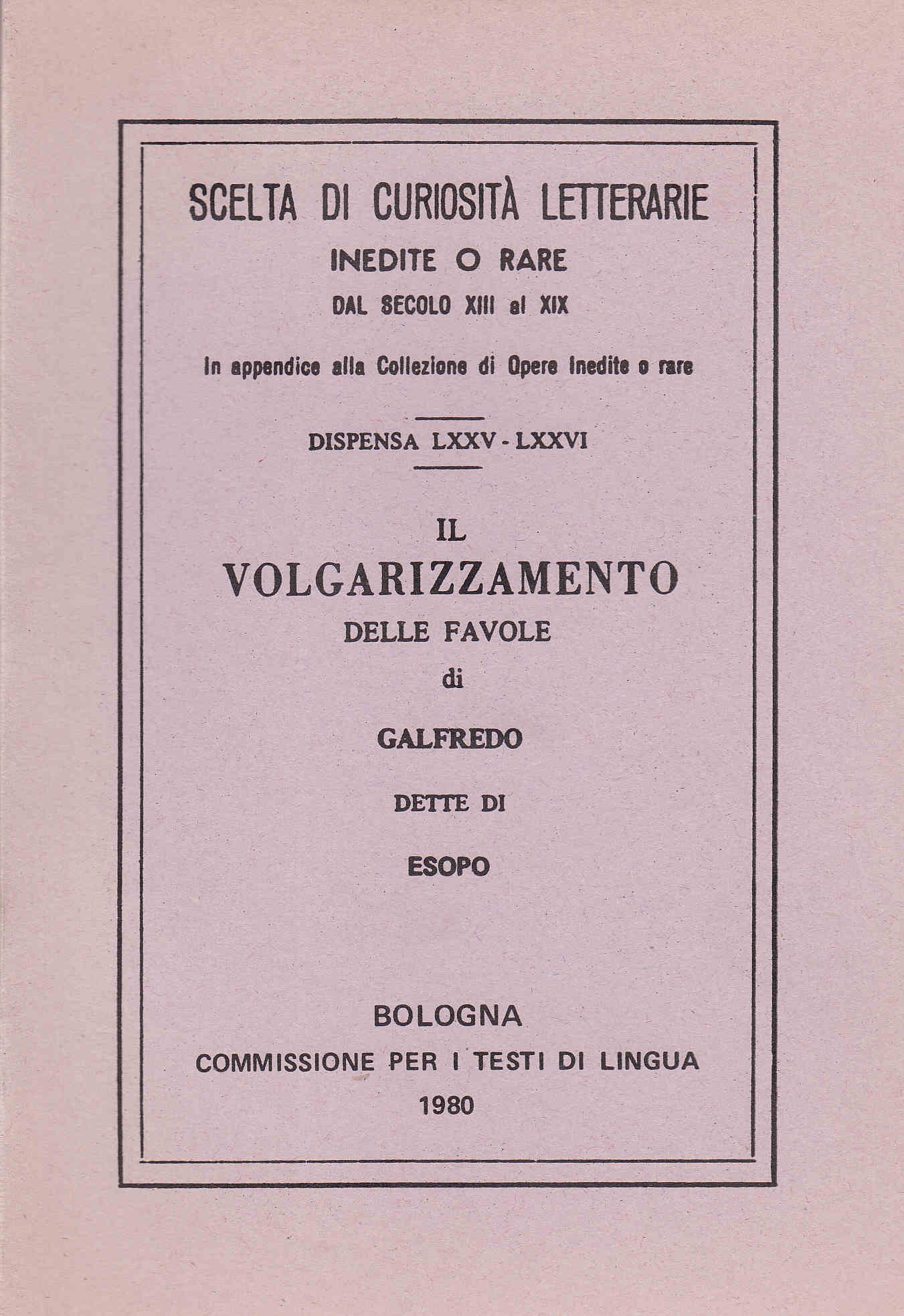 Versione in volgare delle favole di "Galfredo" o "Gualtiero Anglico" (XII secolo), cappellano di Enrico II re d'Inghilterra.
