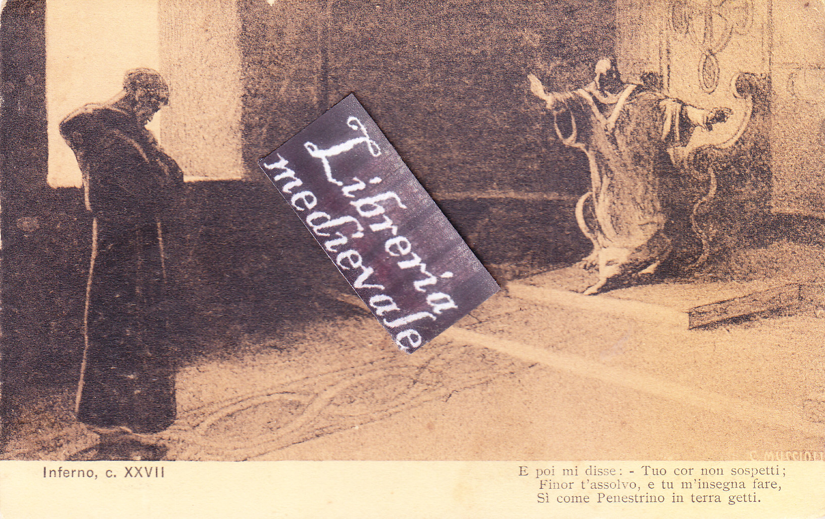 TITOLO/DENOMINAZIONE: Inferno, c. XXVII. E poi mi disse: - Tuo cor non sospetti; Finor t'assolvo, e tu m'insegna fare, Sì come Penestrino in terra getti - CARTOLINA