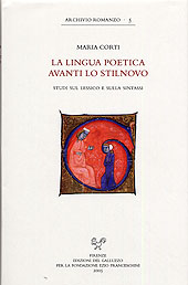 Il progetto di rivedere e raccogliere in volume i suoi studi degli anni Cinquanta sulla lingua poetica della prima poesia italiana era stato delineato da Maria Corti vari anni fa, all'uscita delle Concordanze di Avalle, e aveva portato ad una prima revisione dei testi. Dopo la scompara dell'autrice nel 2002, il lavoro è stato completato dai curatori, ed esce ora corredato di postfazione e indici. Sommario: Studi sulla sintassi della lingua poetica avanti lo Stilnovo - Contributi al lessico predantesco. Il tipo "il turbato", "la perduta" - I suffissi dell'astratto -or e -ura nella lingua poetica delle origini - I "Poeti del Duecento" di Gianfranco Contini - A. Stella, Postfazione.