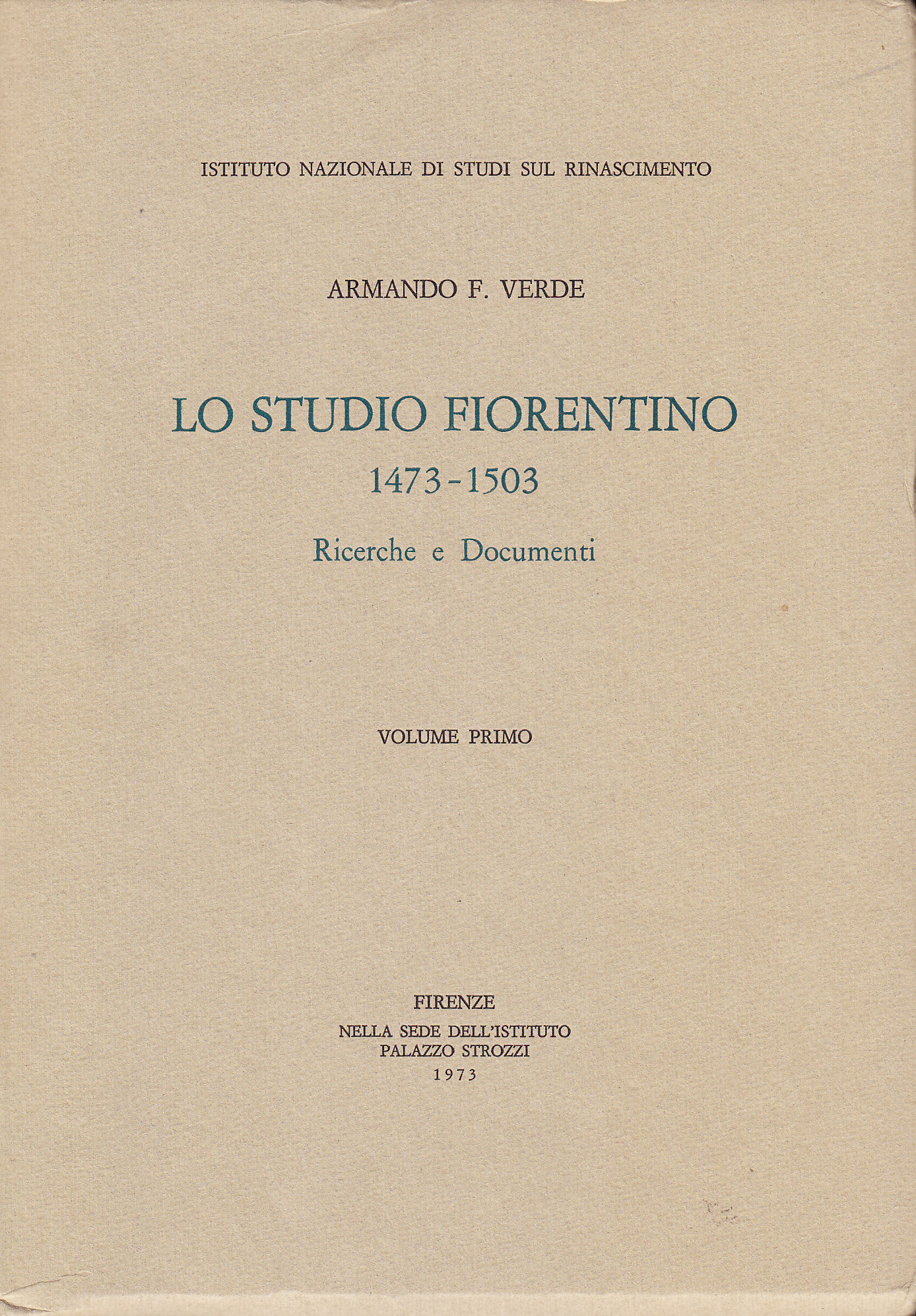 Lo Studio fiorentino 1473-1503. Ricerche e documenti. Volume primo. Introduzione - Bibliografia - Ufficiali dello Studio - Rettori - Rotoli