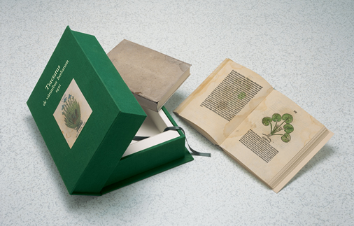 Facsimile di un prezioso erbario-incunabolo il primo stampato a Vicenza nel 1491, con 150 incisioni xilografiche colorate a mano (solo 4 esistenti al mondo) riprodotto su una carta speciale e rilegato in copertina flessibile (come l’edizione originale), 15,2 x 19,2 cm.